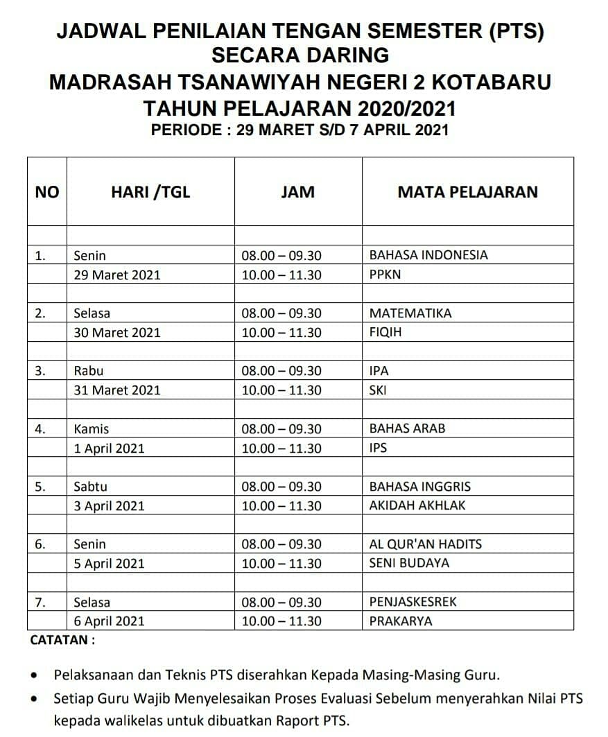 UJIAN MADRASAH KELAS IX. 29 Maret - 07 April